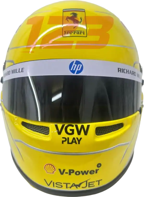 Questa replica casco rende omaggio alla speciale livrea ideata per il Gran Premio d’Italia a Monza. Il design mescola il rosso Ferrari, dettagli bianchi e accenti dorati per celebrare il nuovo capitolo della carriera di Hamilton con la Scuderia. Pensato per l’esposizione, questo casco porta a casa tua l’atmosfera unica del Tempio della Velocità.