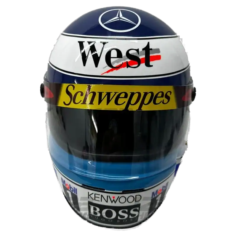Mika Hakkinen 1998 F1 replica helmet full size is a full-size 1:1 display/collector replica inspired by Mika Hakkinen’s 1998 McLaren championship season styling. The design captures the Flying Finn’s title-winning campaign visual identity with collector-grade finish. This helmet represents one of McLaren’s most successful eras with authentic period styling.